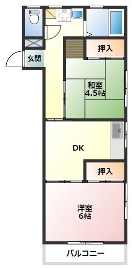 | 間取内容 | 和室4.5畳 洋室6畳 DK4.5畳 |