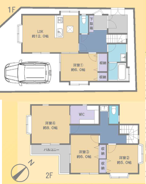 | 間取内容 | 1階洋室6畳1室 2階洋室8畳1室 2階洋室6畳1室 2階洋室5畳1室 |